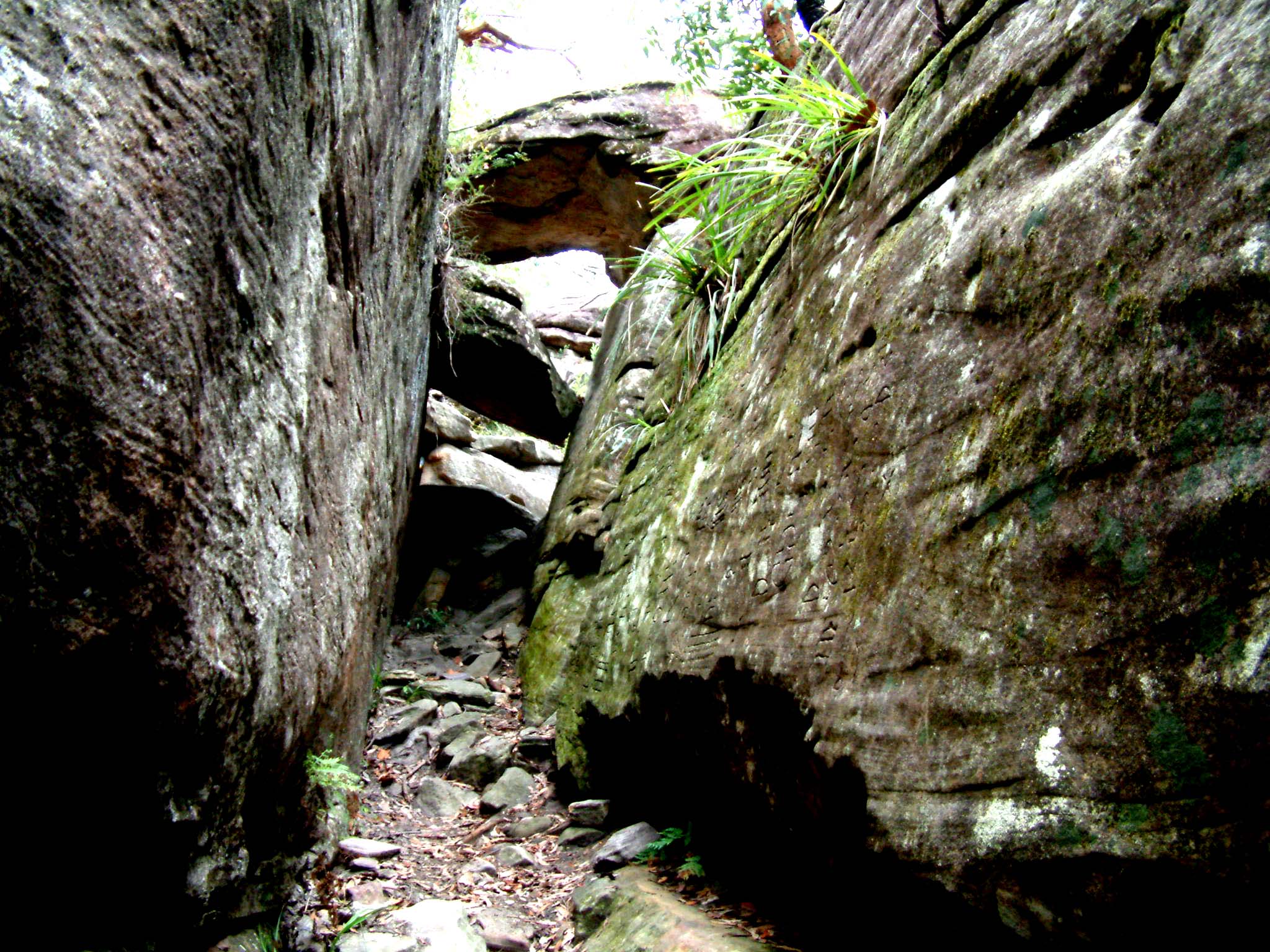Town. National Park, Aborigine carvings on RHS of road in the area.